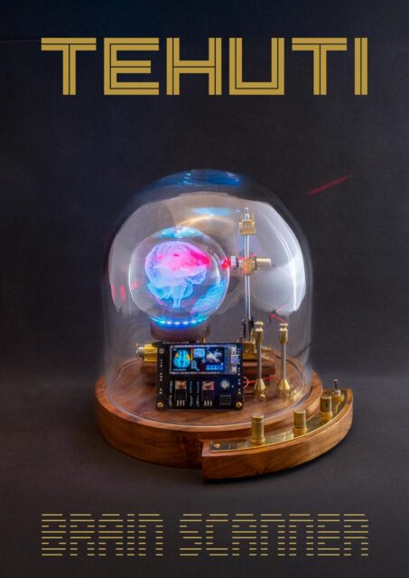 Over time I have started to regret my choice for the small screen because I spent much more time programming the simulation than in creating the brass and wooden hardware elements. Most of the little jokes I included, like a little snake writhering through the brain scan when seeing a stimulus image of a snake, can only be seen with a magnifying glass. Next versions will feature a bigger screen.